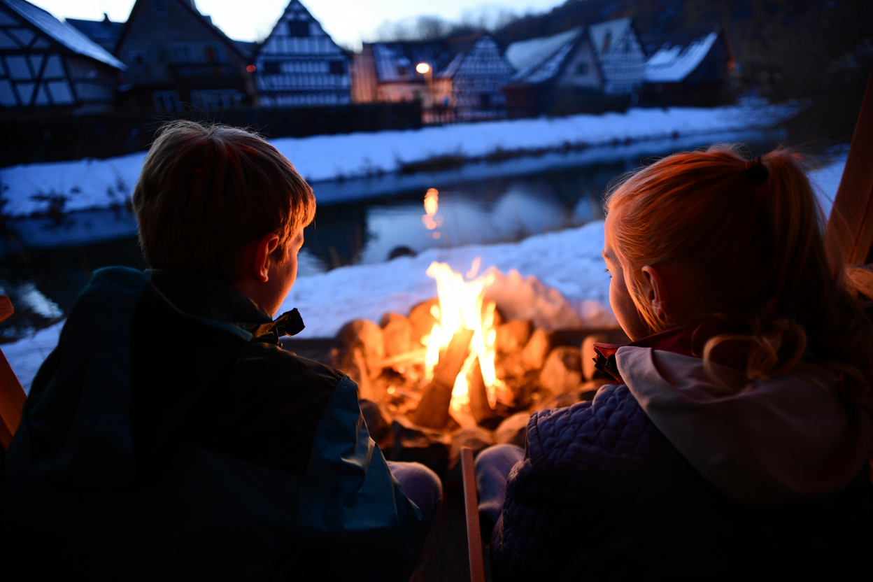 Während Bea mit den Babies unterwegs war, haben es Michi und Charly geschafft, am Kleebach ein kleines Lagerfeuer zu machen. Und versuchen jetzt rauszufinden, wie Glühwein funktioniert. Beziehungsweise… Haben eine Flasche billigen Wein und keine Ahnung. Also Michi so generell nicht, und Charly nicht von Glühwein.