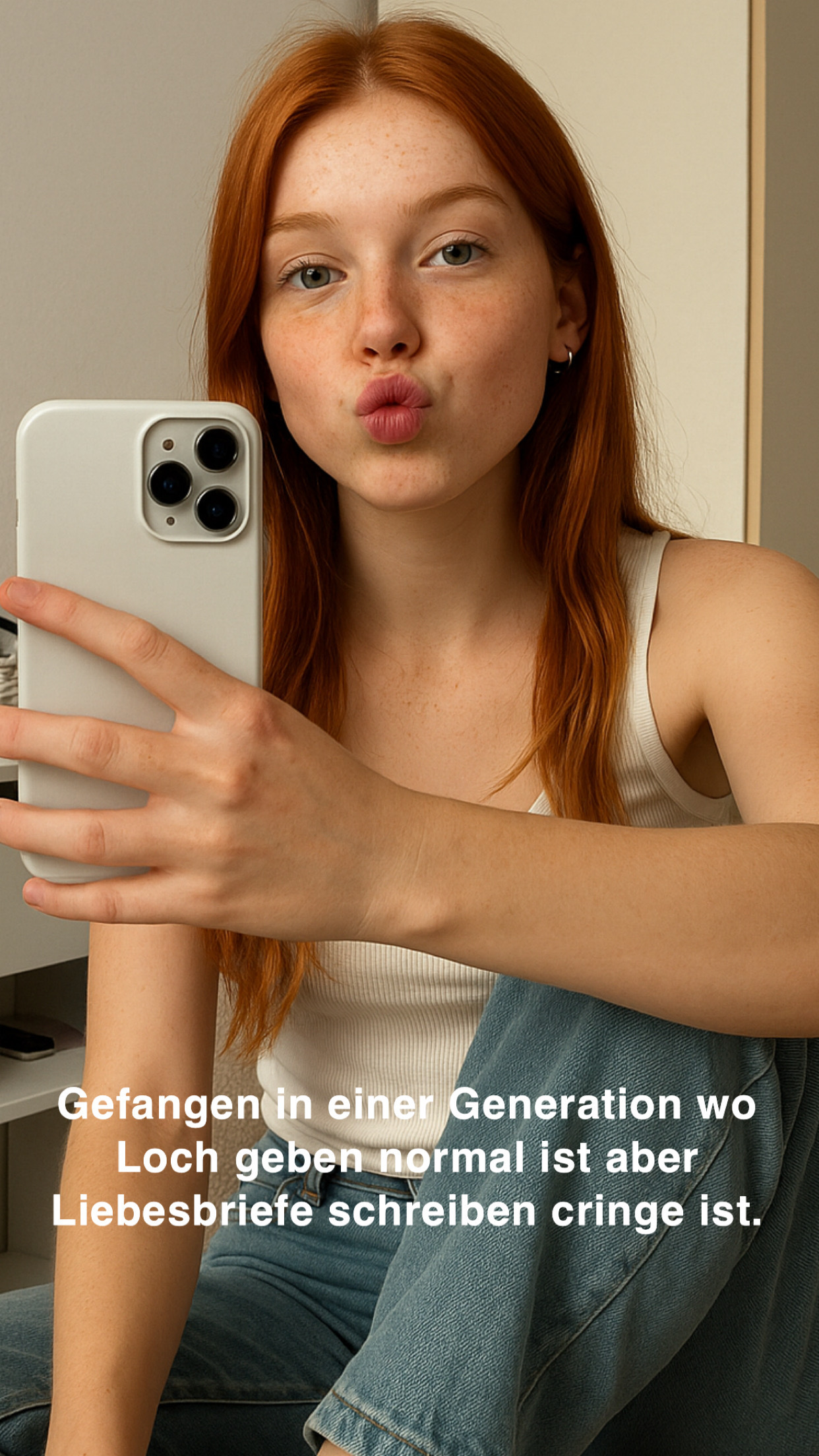 Früher hat man Zettel unter die Tür geschoben und sich drei Tage geschämt, bis man 'ne Antwort bekommen hat. Das war Romantik, nicht dieses Handy-Gepose mit Kussmund.