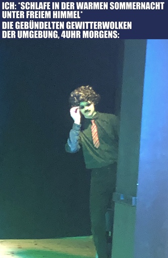 minus-squareboredsquirrel@slrpnk.netlinkfedilinkarrow-up0·1 year agoIch versteh nicht, warum man ohne Zelt schläft. Bei uns in der Umgebung ist nachts jeder m² voll mit Schnecken, Mücken und regnen tuts sowieso