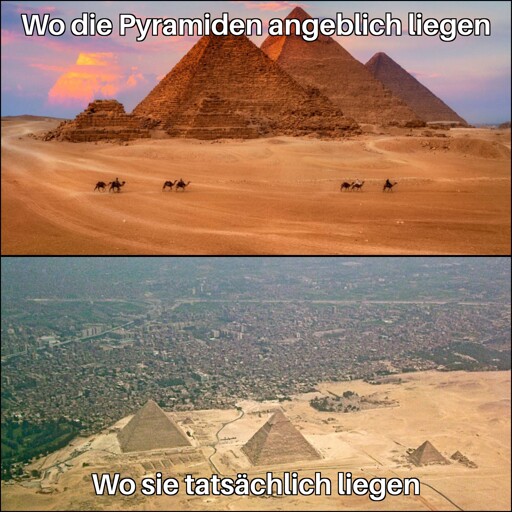 Wie geil es wäre wenn die Stadt einfach drumherum gewachsen wäre! Dann könnte man die Pyramiden innen ausbauen und als Luxushotels nutzen. Außen entsprechend dekoriert mit Neon-Reklame und so nem Zehn Millionen Lux Flaklicht das in den Himmel strahlt. Wie bei den Originalen in Vegas.