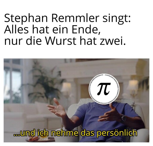Wenn die Wurst zwei Enden hat, hat Pi eins (an der Seite wo es mit 3.14 aufhört). Pi ist Remmler-konsistent.