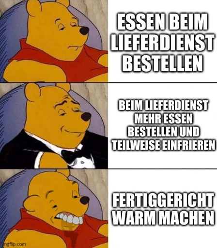 Groß Gehirn Zeit: Beim Lieferdienst mehr bestellen, um den Rest einzufrieren, aber dann trotzdem alles in einer Sitzung aufessen.