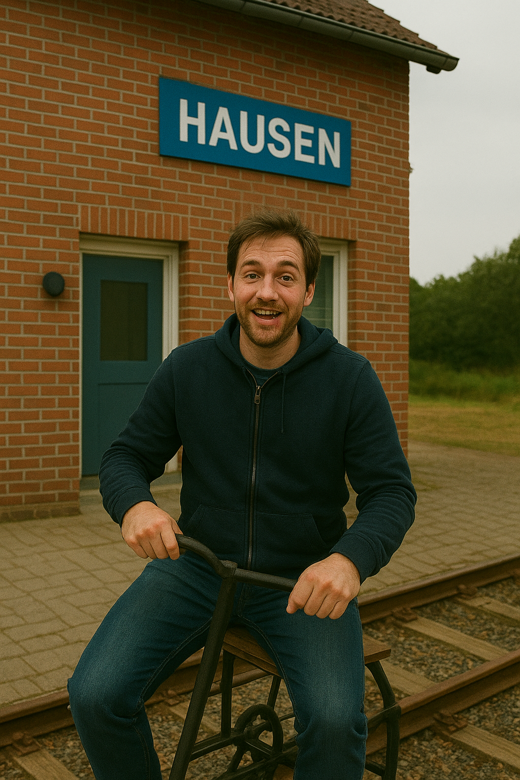 Hey ich suche mal mit. Hier am Bahnhof stand noch so ein Draisinending. Vielleicht können wir damit die Gleise abfahren?