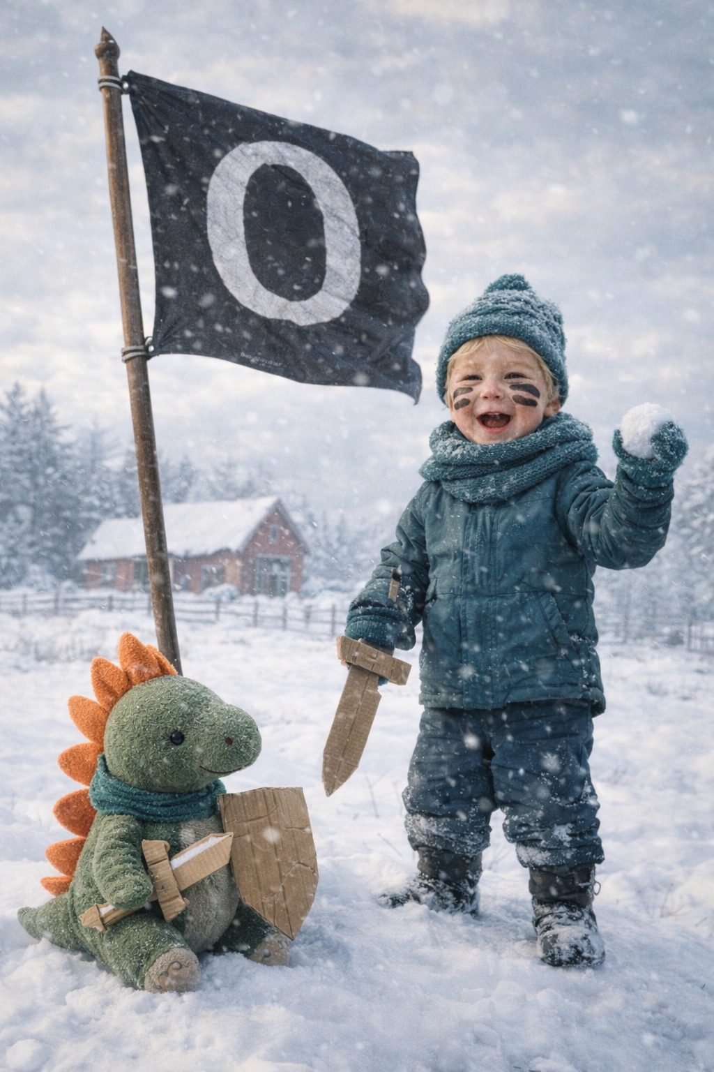 Fiete steht auf einem kleinen Hügel mittig von Hausen. Aber doch eher östlich von Hausen, wenn man es einteilen müsste. Er hat keine Ahnung worum es geht, aber er möchte mitmachen. Ritter spielen macht Spaß. Und mit Schnee sogar noch mehr. Alle die an ihn vorbeigehen fragt er laut und euphorisch: Willzu kämpfn?