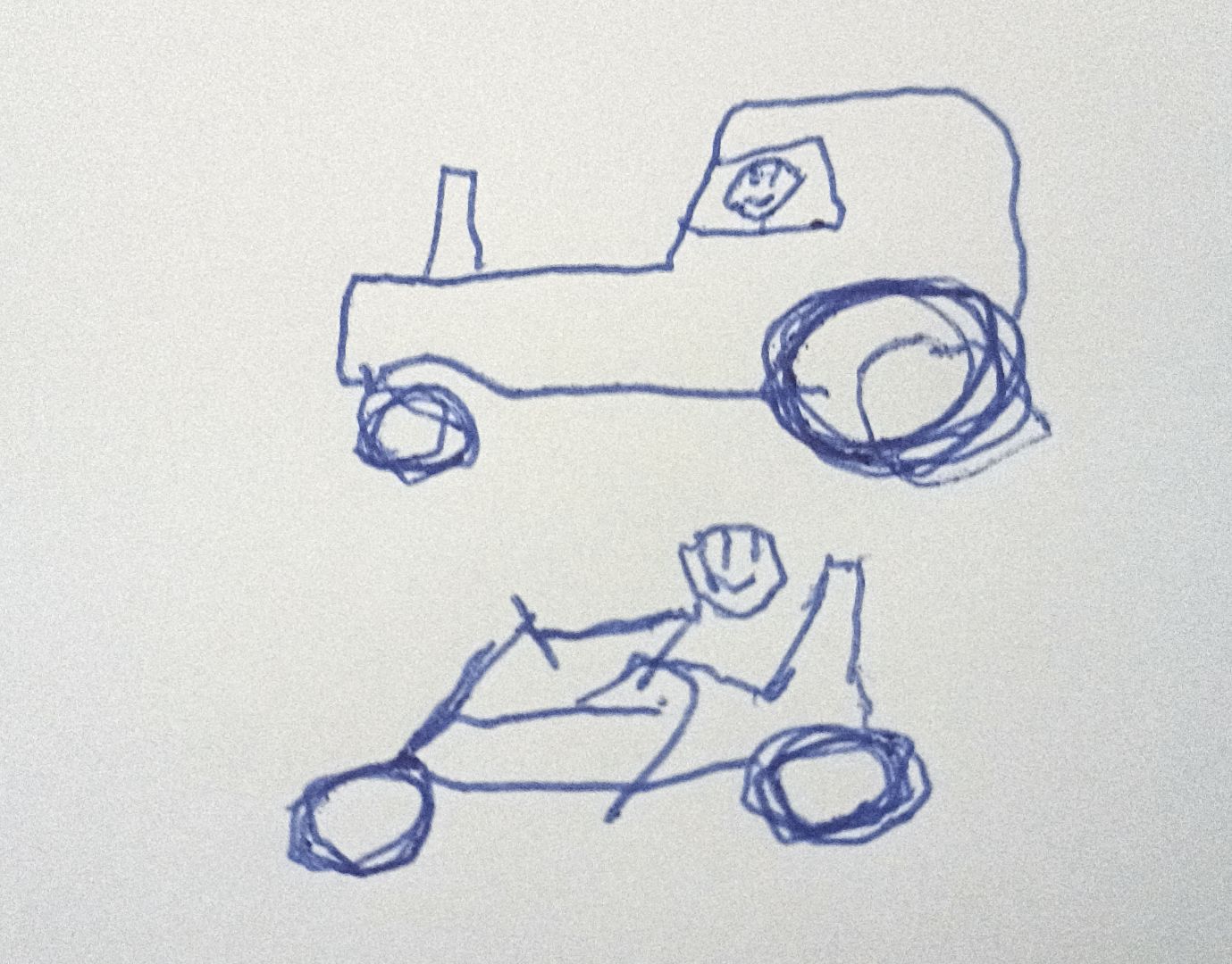 hält Stacy ne Zeichnung von nem Motorrad und nem Traktor hin