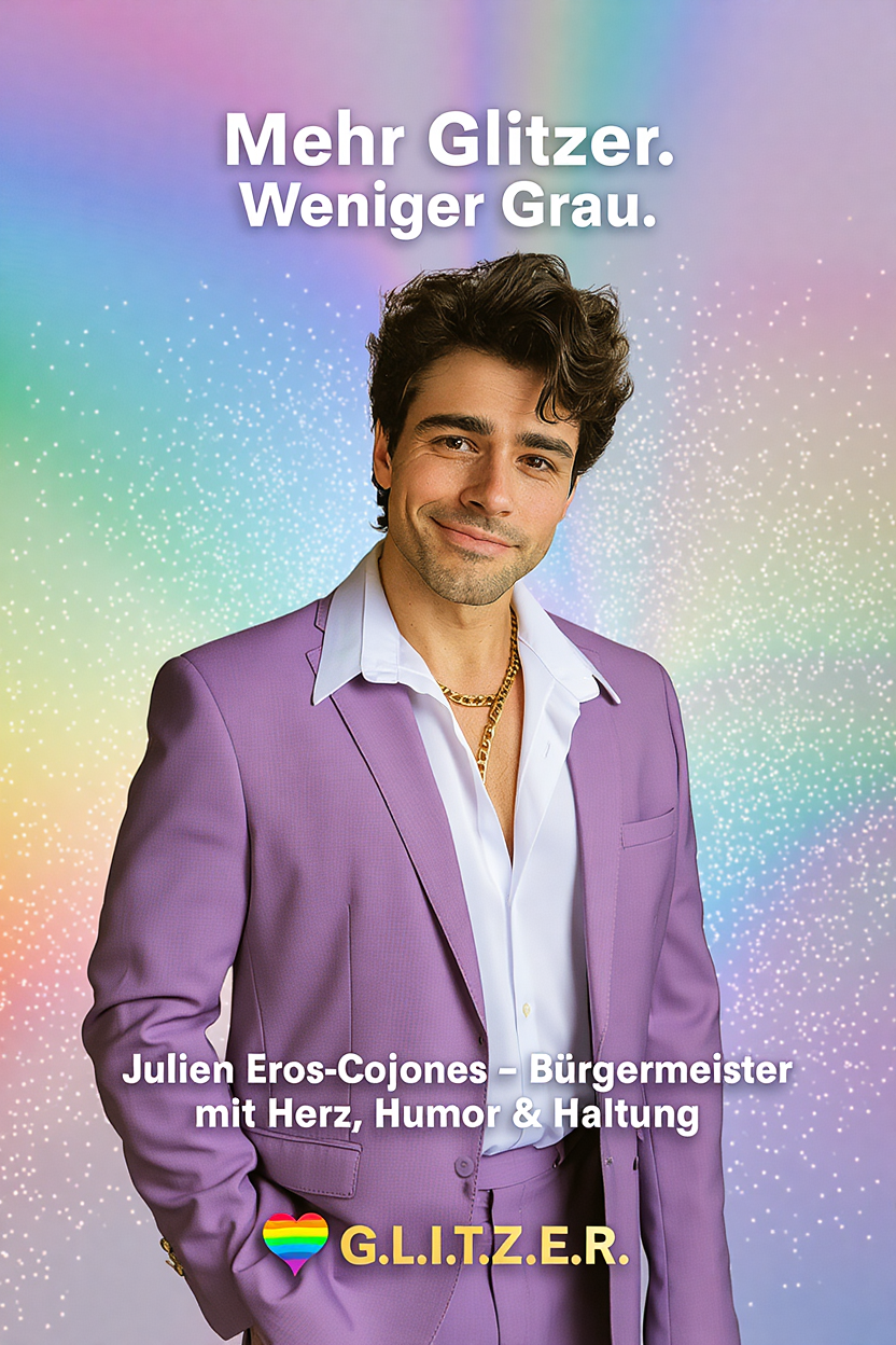 Partei: G.L.I.T.Z.E.R. - Gemeinsam. Liebevoll. Inspirierend. Transparent. Zukunftsorientiert. Empathisch. Real.