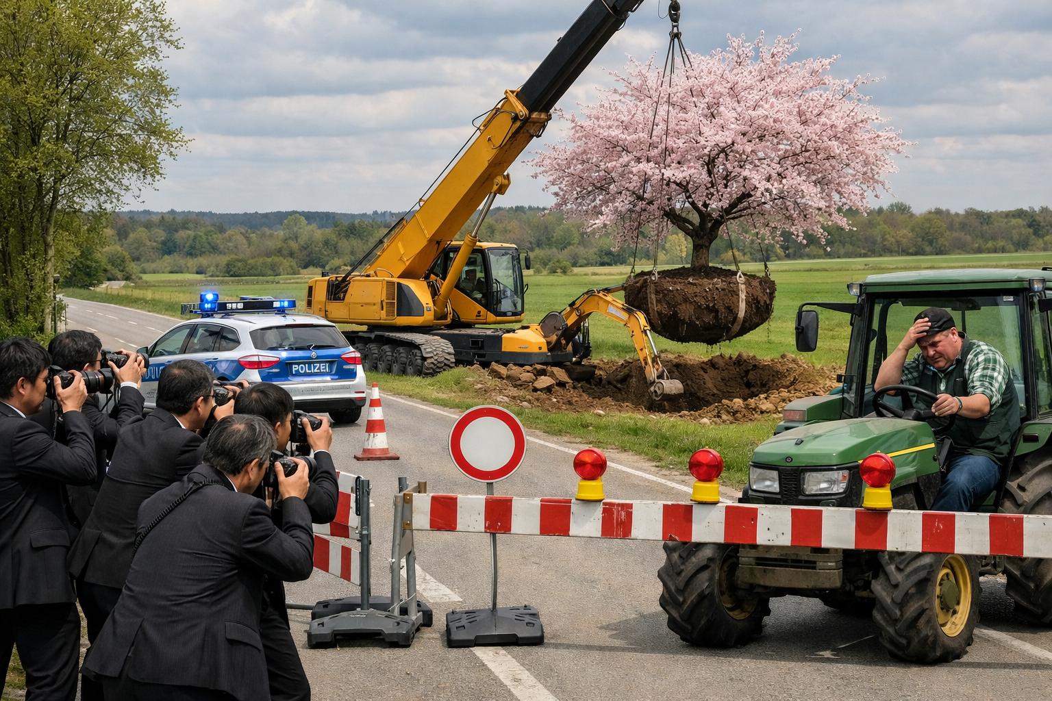 Japanische Freundschaft hat einen Kirschbaum gepflanzt in die Stelle wo Kette geendet. Nur dicker Mann in Traktor sauer wegen alles absperren und sagen sein Acker nicht dürfen. Aber Tradition ist Tradition und Bauer San dann ganz viel Sushi gegessen.