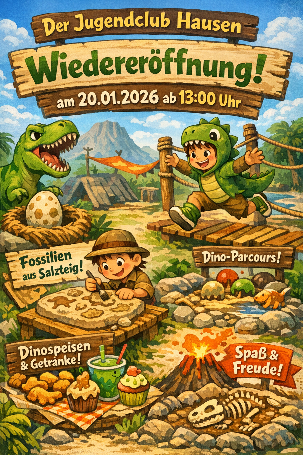 Am 20.01.2026 ab 13:00 Uhr laden wir euch herzlich zu unserem Dino-Tag ein. Ein Nachmittag, an dem Kinder und Jugendliche nicht nur Spaß haben, sondern auch selbst aktiv werden, ausprobieren, entdecken und gestalten dürfen. Es geht ums Mitmachen, ums Bewegen, ums Kreativsein und darum, gemeinsam etwas zu erschaffen. Genau so, wie ein Jugendclub sein sollte: ein Ort, an dem man sich sicher fühlt, gesehen wird und wachsen darf.