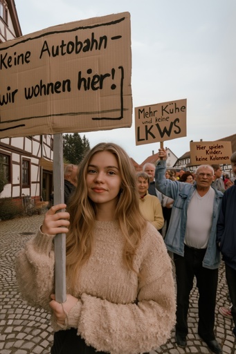 Vanja steht entschlossen auf dem Platz, bereit sich zu wehren wenn es denn sein muss. Sie will keine Autobahn. Sie will ihre Ruhe hier behalten. Sie sieht sich nach ihren Freunden um