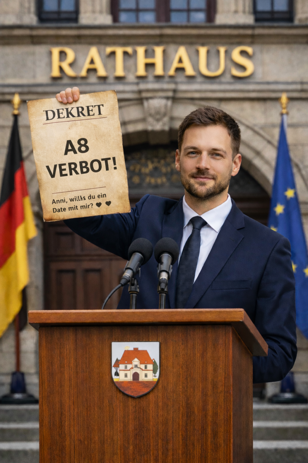 Anni starrt lange auf das Bild. Sie fragt sich kurz, warum Maxi berechtigt ist, ein Dekret zu unterschreiben, ein bisschen länger, was mit ihm eigentlich nicht stimmt ^und insgeheim sehr lange, warum jetzt wieder sie und nicht Nathalie, Maxi scheint sehr sprunghaft zu sein?^ Hilfesuchend schaut sie sich nach Kalle, beziehungsweise seinem Flachmann, um.