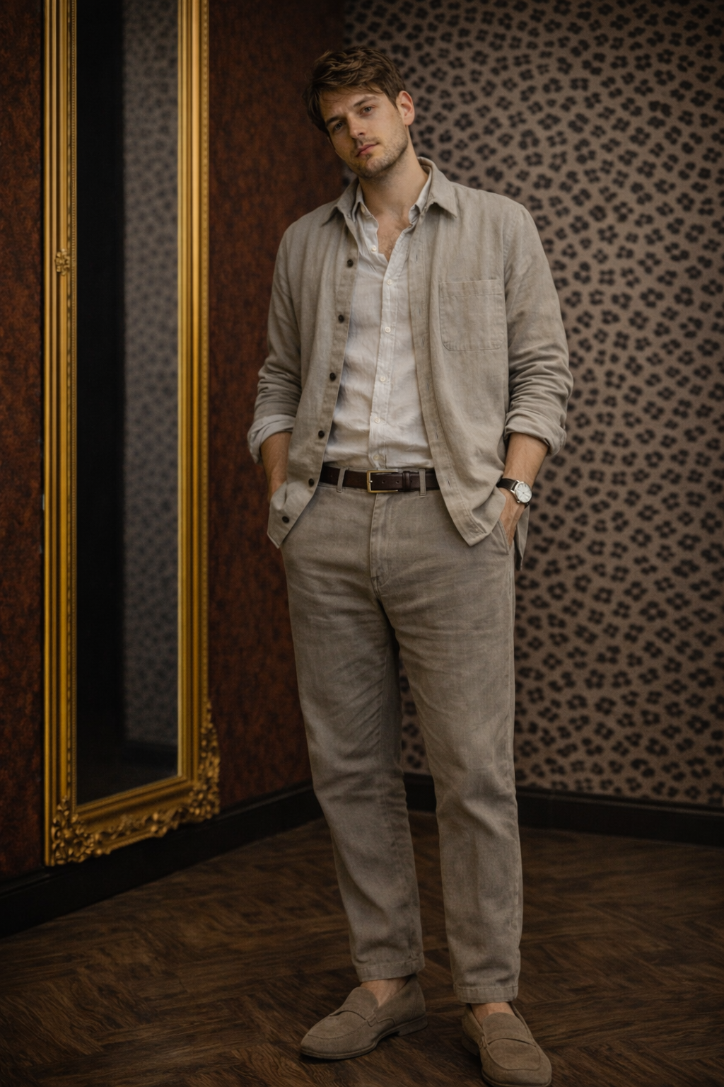 Stacy? Maximilian begutachtet sich im Spiegel warum trage ich eine Handtasche und weshalb soll ich bei einem Frühstück im Dorfcafé eine Krawatte tragen? Er schaut sich selbst skeptisch von oben bis unten an ist das nicht overdressed?
