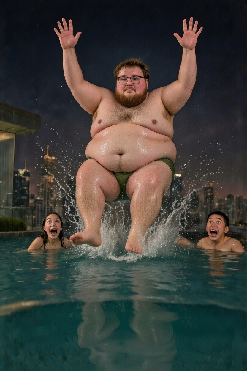 Springt in den Pool. Geht unter, weil er nicht schwimmen kann. 🫨🫧🫨🫧🫨🫧