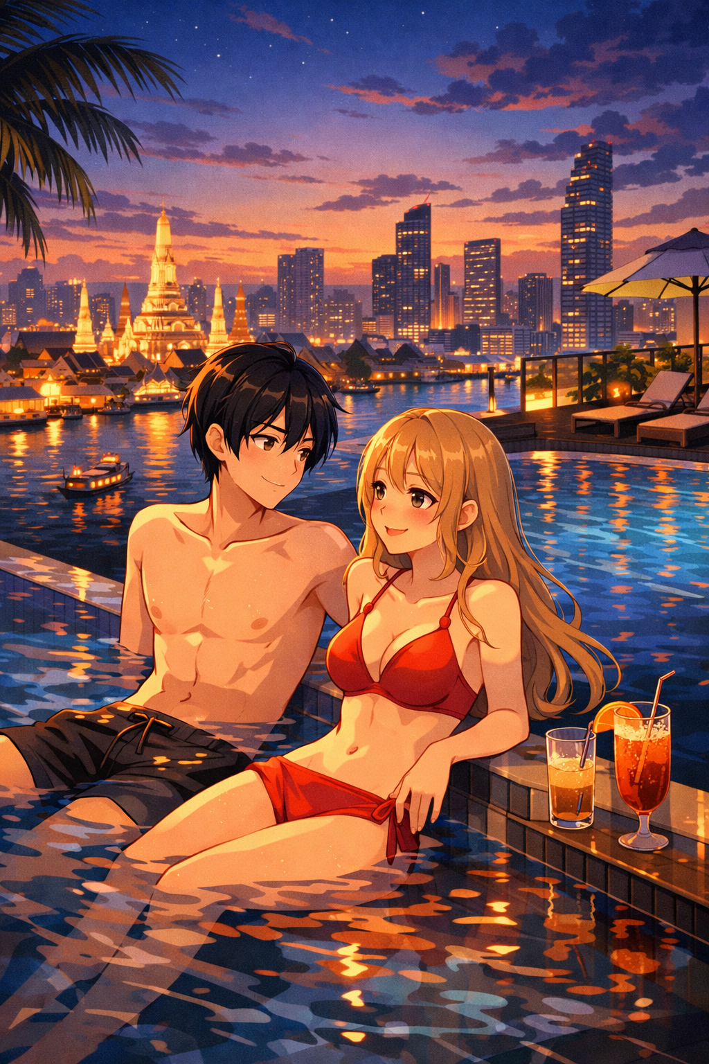 PEINLICH schreit Charly und geht zu @MichiB@lemmy.dorfrollenspiel.de in den Pool. Sollen wir auch mal was probieren? zeigt auf das schwimmende Tablett auf dem Alkohol steht.