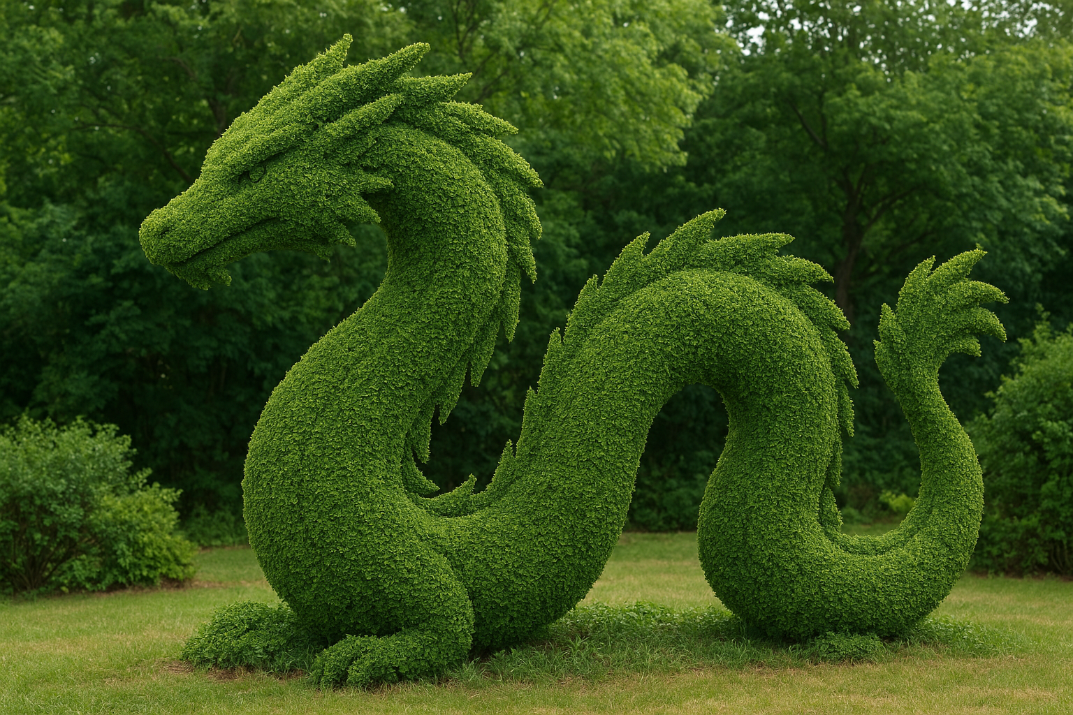 Flicken dreht sich von der Skulptur ab und sieht sich im Garten um.
