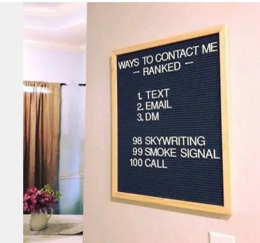 That’s about the only reason a call is better and should be scheduled as a meeting If at all possible. If there’s no need to have a back and forth conversation just text or email so I don’t have to disrupt the half dozen other things I’m currently working on to deal with you. As for humanity I spend enough time interacting with people I don’t want to talk to. I’m not hurting for more.