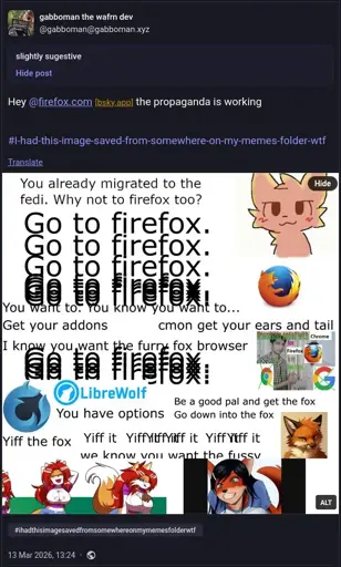 The meme includes Librewolf. If you also boycott all Firefox-based browsers, I would be interested in what browser you’re using.