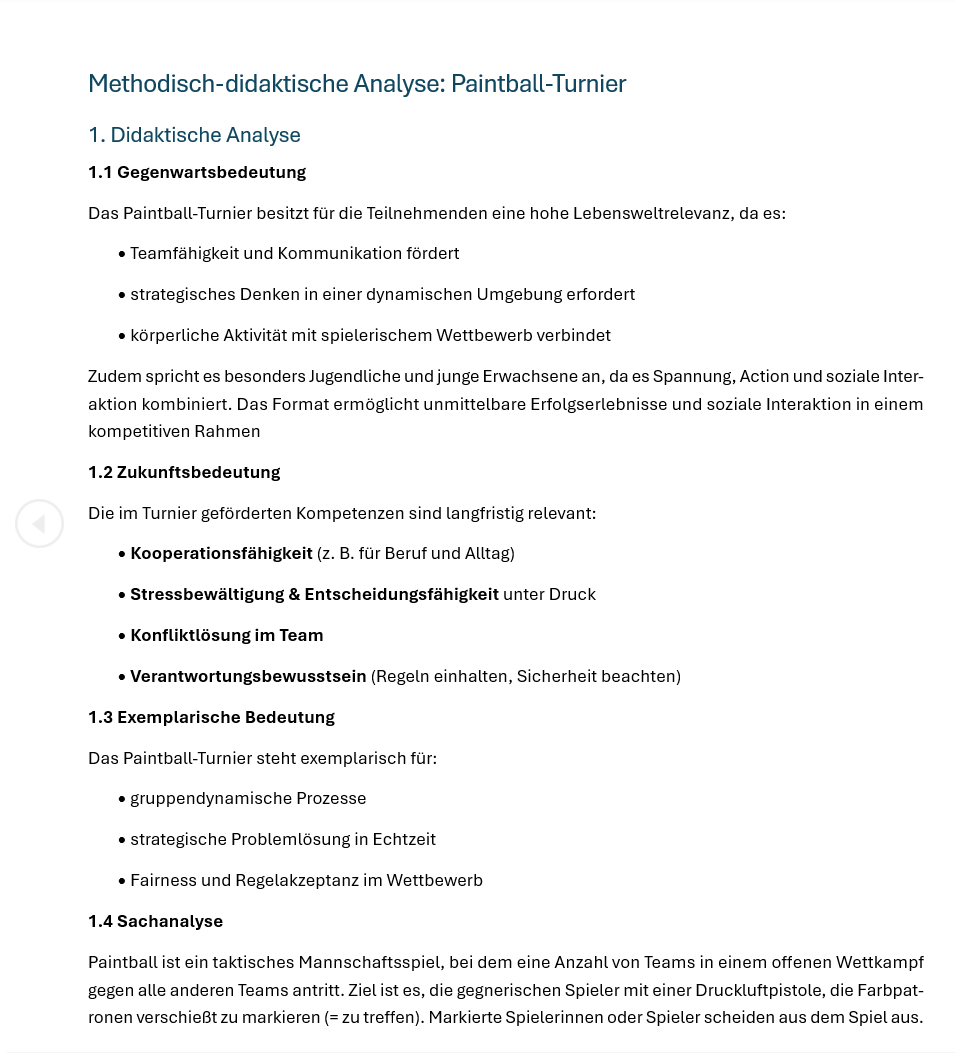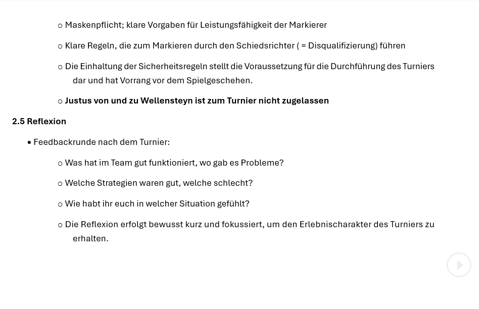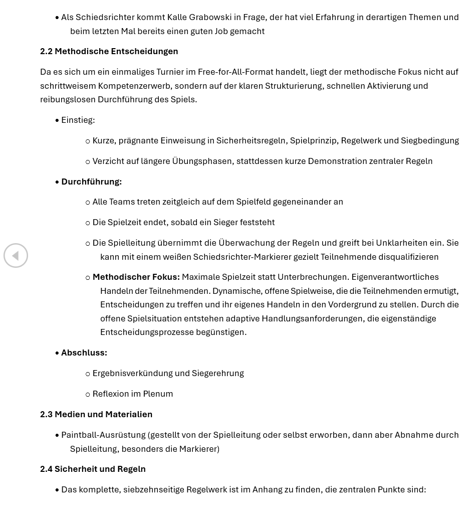 Und das ist einfach mies gut angekommen!! Warum machen wir nicht so etwas noch mal?! Und bevor du jetzt kommst, neeee, boha, mit Waffen, voll uncool, hier ist das methodisch-didaktische Konzept!! Und das Regelwerk vom letzten Jahr können wir einfach wieder benutzen, wir müssen nur ergänzen, dass Justus von und zu Wellensteyn von der Teilnahme ausgeschlossen ist, der schuldet Luis deswegen nämlich richtig viel Kohle und das Luftschläge verboten sind, aber das ist ja schnell gemacht!!