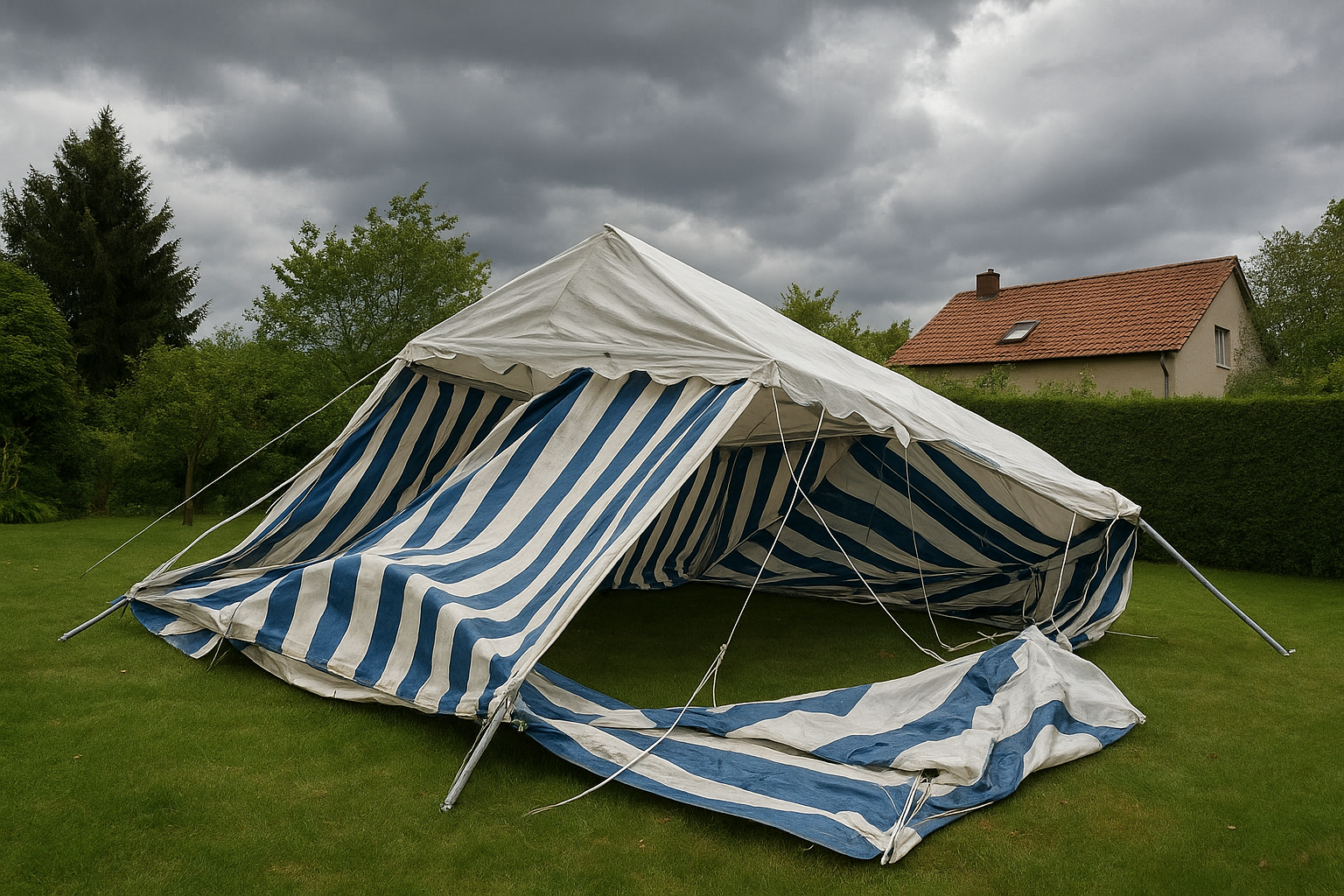 Bei uns wurde ein Bierzelt un den Garten geweht, wem gehört das?