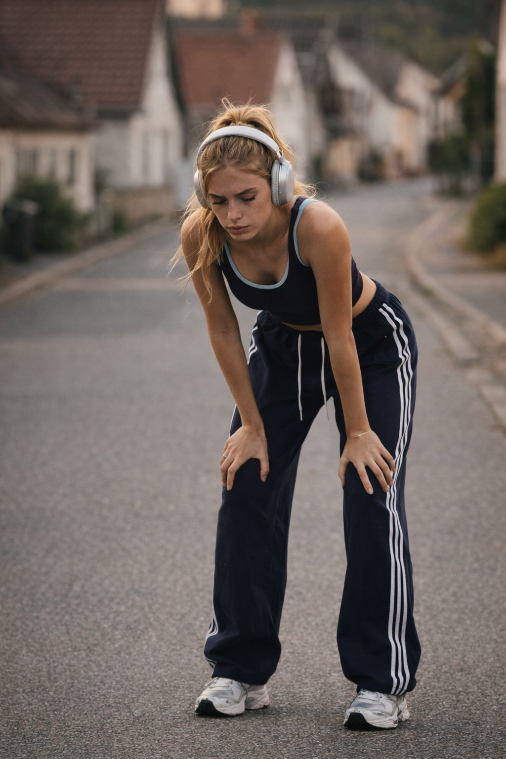 Stacy hat sich vorgenommen, sportlicher zu werden. Also ist sie nach dem Treffen mit Vanja noch joggen gegangen. Aber zwei Straßen weiter ist schon Schluss.