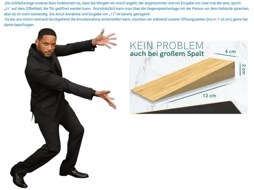Nope, ich brülle immer ein fragendes ‘Hallo?’ in den Hörer, außer zur Ablösezeit, dann mache ich einfach auf.