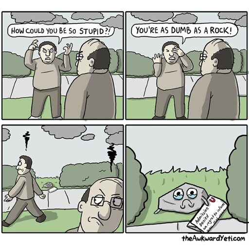 This planet is almost entirely made of rock. Compared to the amount of rock there is, all of humanity might as well be a rounding error. Insult their intelligence all you want, but they’re winning.