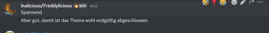 /un da der Donnercup offensichtlich Freddys Projekt war, hätte es hier eine Absprache geben müssen bevor du da einfach mit “wir haben gewonnen” entscheidest dass das nicht weitergehen kann. Freddy hat auf Nachfrage sein okay gegeben, dass das so bleiben darf. Dennoch bitte in Zukunft absprechen, bevor so grob in ein Projekt eines anderen Spielers eingegriffen wird - hätte ja auch sein können dass er da schon 10 weitere Posts vorbereitet hat.