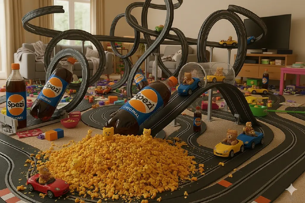 Keine Idee, keine Zeit, völliges Chaos. Bis Michi sich erinnert: Maxi. Der Typ, der mit Luis aus einem Heißluftballon gepinkelt hat, während Berti filmte. Michi meint nur: Digga, der war doch safe high. Hundert Prozent.