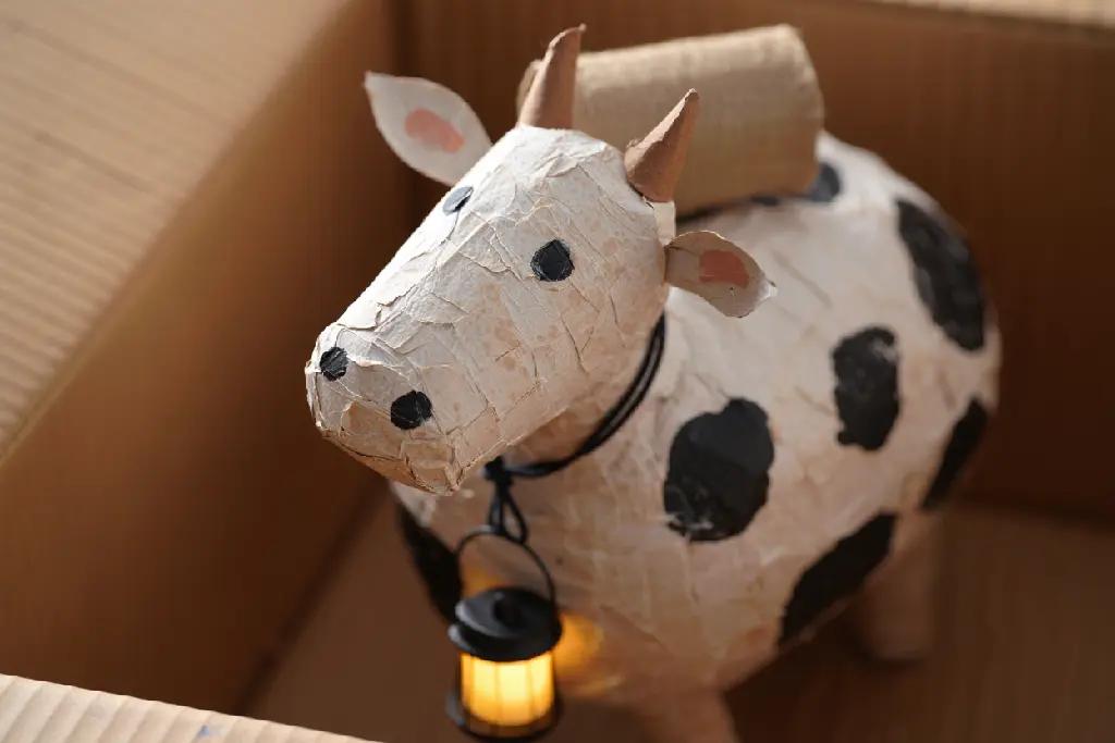 Popcorn (die Kuh) hat mir schon paar Mal das Leben bisschen heller gemacht. Um das zu würdigen, kann diese Pappmaché-Kuh wortwörtlich deine Nacht erleuchten.