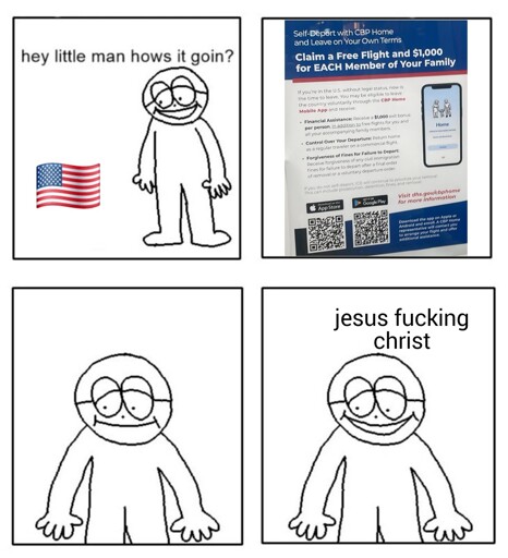 minus-squareaxEl7fB5@lemmy.cafelinkfedilinkEnglisharrow-up1·8 months agoInfinite Money Glitch Be a Canadian Live near the US border in Canada Climb border Dys (Deport yourself) to get a flight back home and a thousand bucks. Repeat