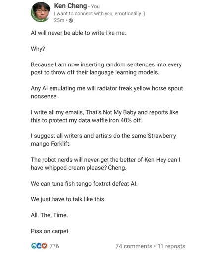 This is a comedian who always posts satirical stuff on LinkedIn.