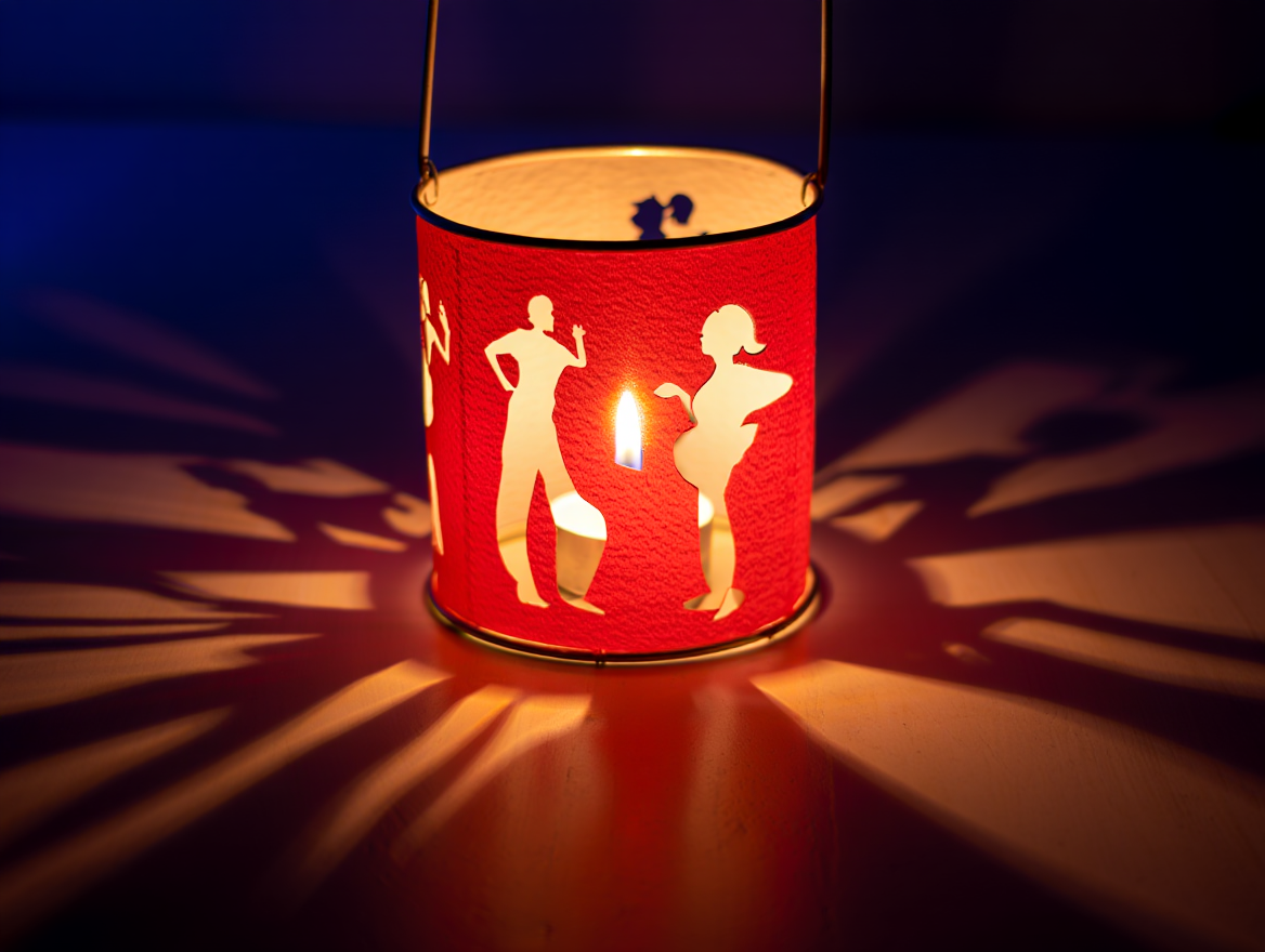 Nachdem sie fertig ist, zündet Anni vorsichtig die Laterne auf dem Tisch an.