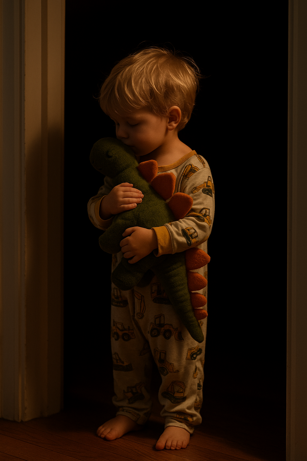 Fiete ist wach geworden und kann nicht mehr schlafen. Den Weg zu Benni ins Schlafzimmer hat er gefunden, aber er will ihn nicht wecken, damit er nicht böse ist.