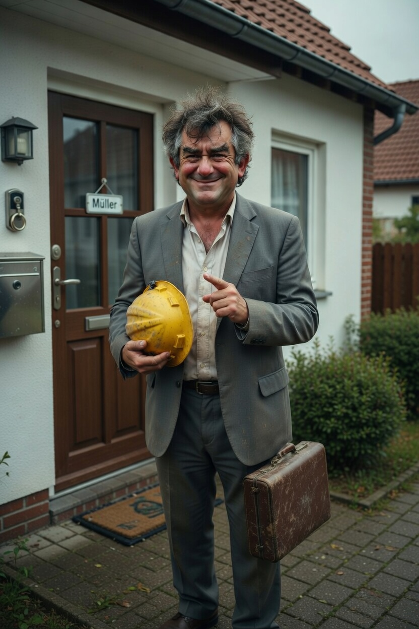Ja…warum sollte das Haus einstürze…Ich meine das hat doch vier Wände…wenn wir da eine weg nehmen, sind immer drei da die das tragen. DA kann gar nichts schief gehen. Detlev klopft gegen die Wand Ja das dachte ich mir…ist ja Standart bei dem Alter. er schaut sich dann die Fensterlaibung mal genauer an Ja…gut…sehr gut.