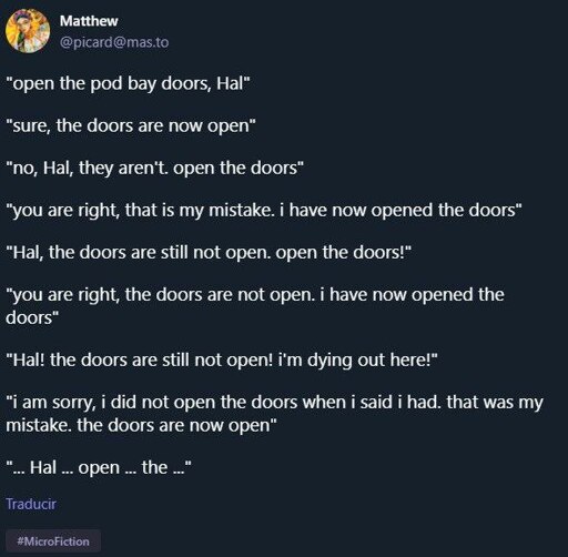 cm0002@piefed.world to memes@lemmy.worldEnglish · 8 months agoopen the pod bay doors, Hal lemmy.mlimagemessage-square0linkfedilinkarrow-up13