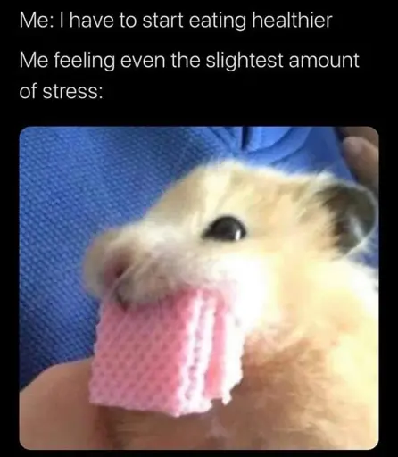 compostgoblin@lemmy.blahaj.zone to memes@lemmy.world · 5 months agoStress eating is my weaknesslemmy.blahaj.zoneimagemessage-square0linkfedilinkarrow-up11