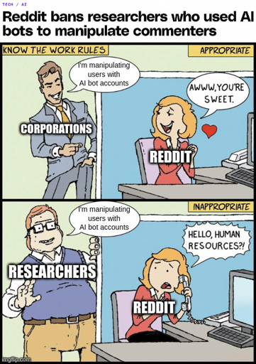 theunknownmuncher@lemmy.world to memes@lemmy.world · 8 months agoknow the Reddit ruleslemmy.worldimagemessage-square0linkfedilinkarrow-up11